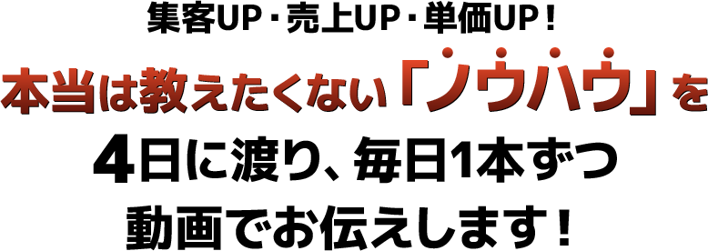 集客UP・売上UP・単価UP! その「ノウハウ」を 4日間に渡って大公開!